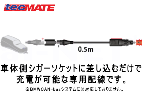 国内正規品 tecMATE テックメート OptiMate CABLE O-02 OPTIMATE4 Dual オプティメイト4 デュアル用 ケーブルアクセサリー シガーDCケーブル SAE#2 電源ケーブル