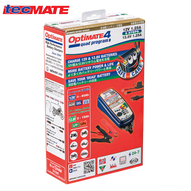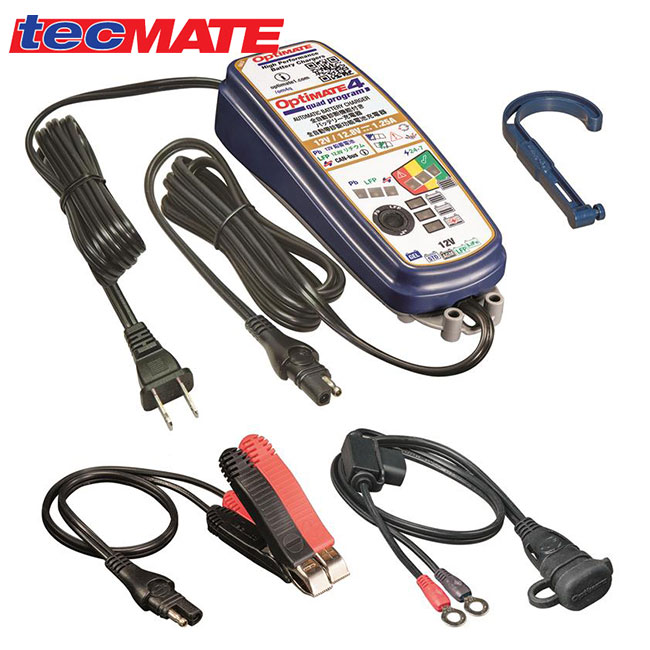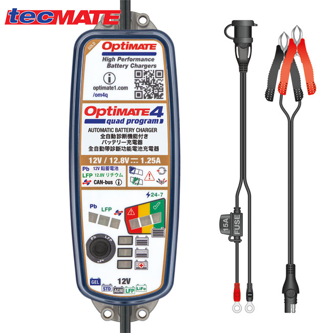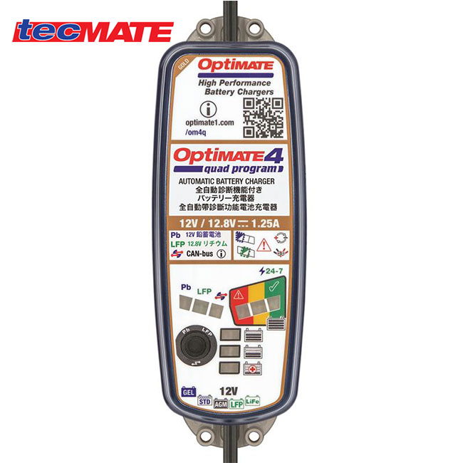 OptiMate4 Quad Program オプティメイト4 クワッド プログラム 12V鉛/12.8Vリン酸鉄リチウムイオン電池 バッテリーチャージャー レース用バイク