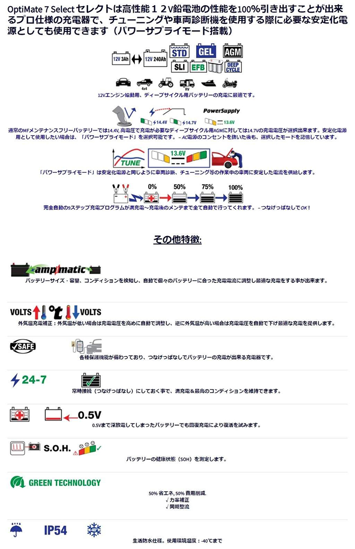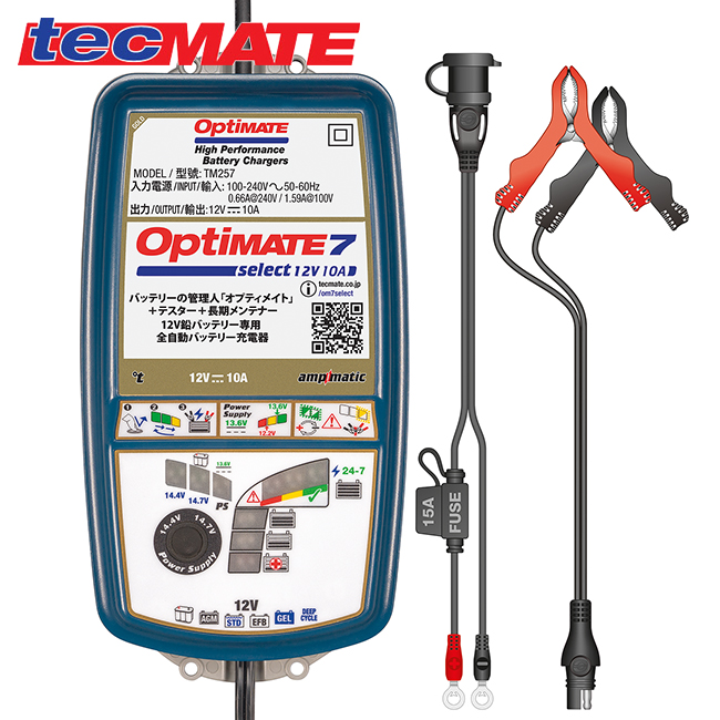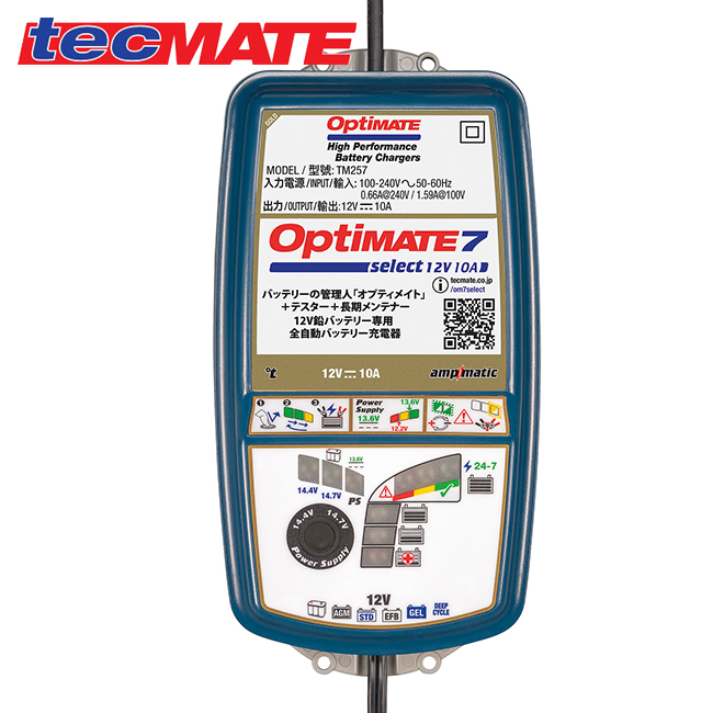 国内正規品 OptiMate 7 Select TM-257 オプティメイト7 セレクト 12V/10A 鉛蓄電池用充電器&メンテナー ディープサイクル対応 プロ仕様 ツーリング レース用バイク