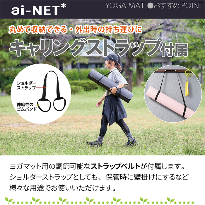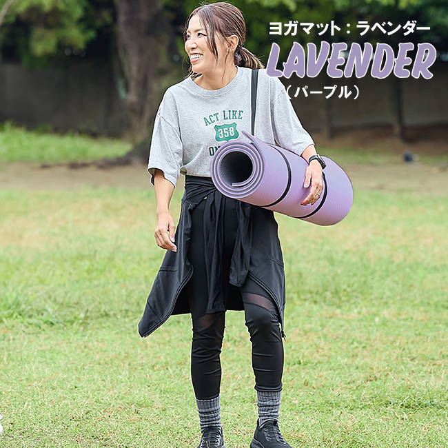 ainet/アイネット ヨガマット ラベンダー 全長183cm 幅80cm 厚み8mm TPE素材 パープル 5色展開 高密度 反発性能 体幹トレーニング 滑り止め ストラップ付属