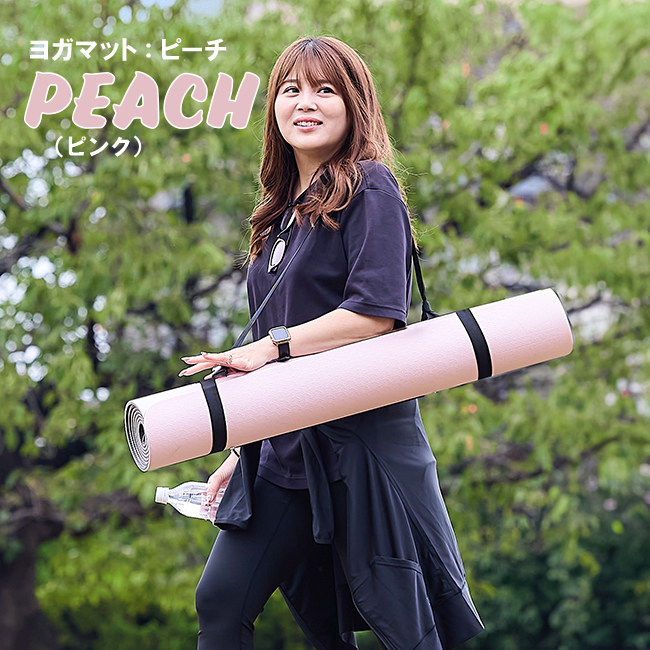 ainet/アイネット ヨガマット ピーチ 幅61cm 5色展開 TPE素材 ピンク 高密度 反発性能 体幹トレーニング 滑り止め キャリングストラップ付属 エクササイズ フィットネス トレーニング ストレッチ 体幹運動 腹筋